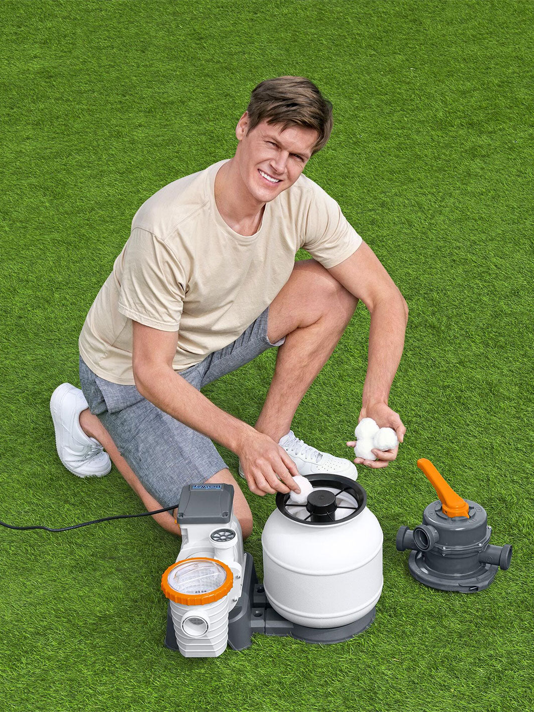 Mantén el agua de tu alberca siempre limpia de forma práctica y ecológica con las Bolas Filtrantes Bestway® Polysphere™. Estas innovadoras esferas de fibra ligera reemplazan la arena tradicional en tu bomba de filtración, ofreciendo un sistema más eficiente, duradero y amigable con el medio ambiente.