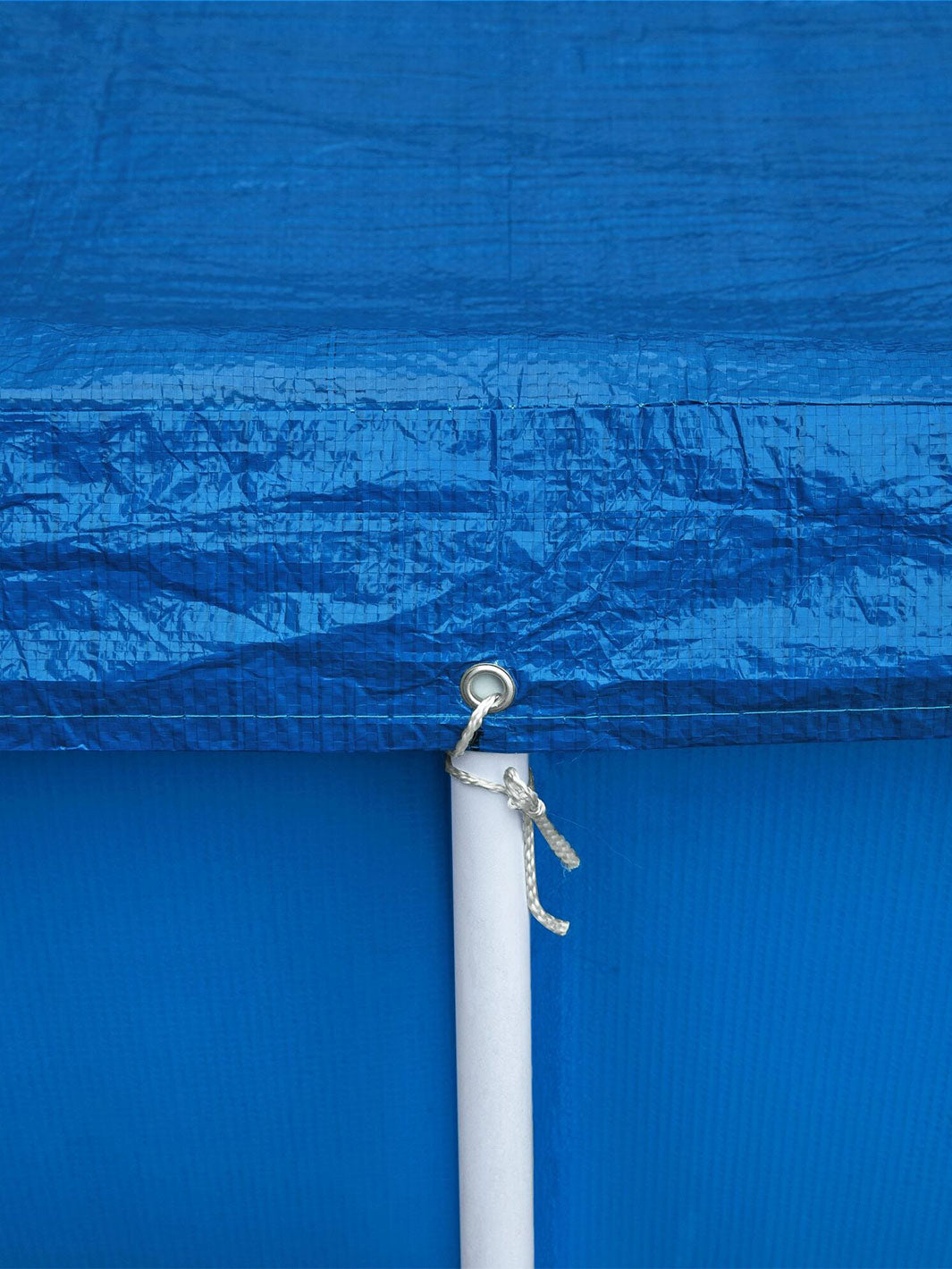 Gracias a sus orificios de drenaje, evita la acumulación de agua de lluvia y el estiramiento del material, prolongando su durabilidad. Además, cuenta con una cuerda integrada que se ajusta firmemente alrededor del borde de la alberca, garantizando una sujeción segura incluso en días de viento.