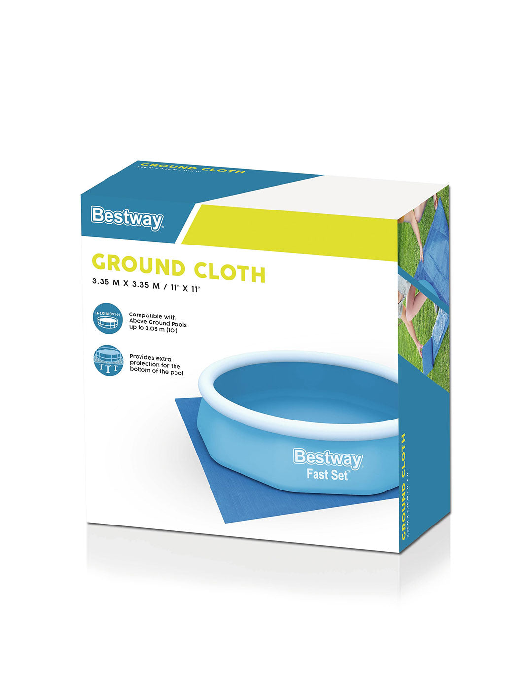El protector de suelo Bestway® de 3.35 m x 3.35 m es el complemento ideal para mantener tu alberca o jacuzzi inflable en perfectas condiciones. Diseñado para colocarse debajo de la alberca, este tapete base protege el fondo contra piedras, ramas u objetos que puedan dañar el material, alargando la vida útil de tu producto.