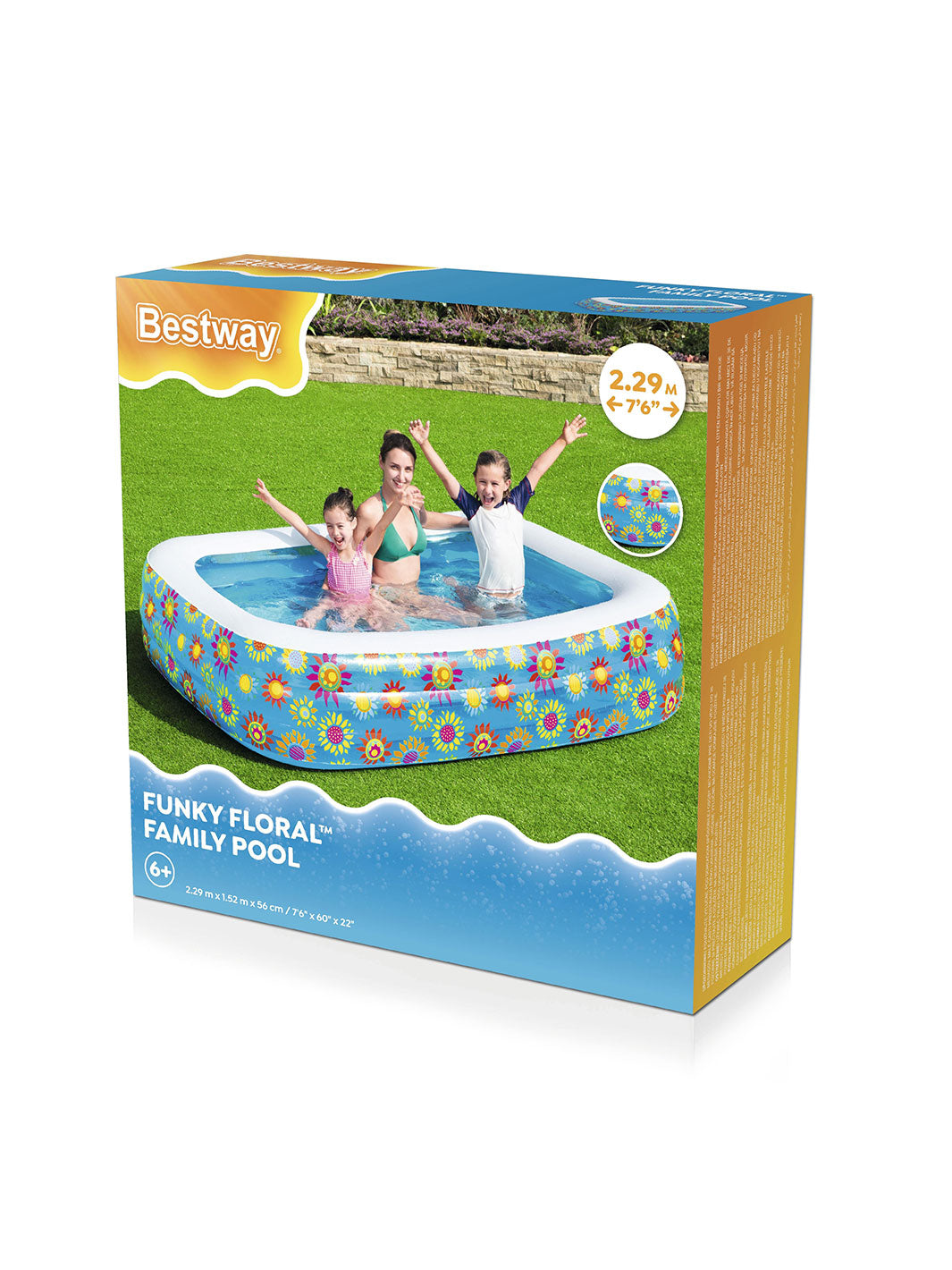 Convierte tu patio en el lugar favorito de la familia con la Alberca Inflable Bestway Funky Floral 2.29 m. Su diseño colorido con estampado floral aporta un estilo divertido y moderno, perfecto para dar un toque especial a tus reuniones y tardes soleadas.