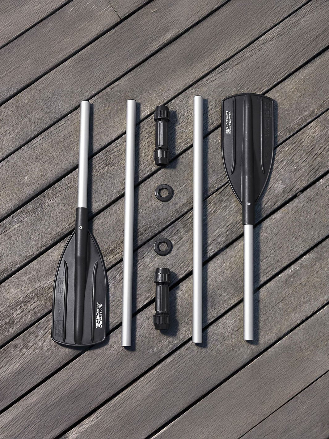Explora cada rincón del agua con el set de remos Hydro Force® Premium de aluminio, diseñado para ofrecer potencia, control y comodidad en cada palada. Este versátil conjunto puede usarse como dos remos individuales de 1.45 m o combinarse en una pala doble de 2.18 m, ideal para kayak o bote inflable.